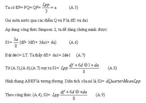 Do cách tính trung bình hai lần ở các công thức (A.2), (A.3), nên dFinalMean sẽ khác  d¤ một phần tư của (d¤ – dm), vì vậy nó được gọi là mớn nước trung bình một phần tư .