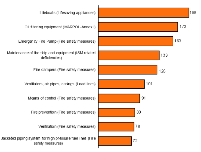 2. Hệ thống lọc dầu (công ước MARPOL(1)- phụ lục 1)- Oil filtering equipment (MARPOL-Annex I): 173 khiếm khuyết