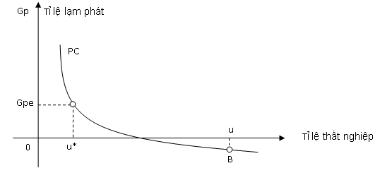Đường này gọi là đường Phillips (PC- Phillips Curve) biểu thị mối quan hệ giữa lạm phát và thất nghiệp. Hàm lạm phát Gp= Gpe- ε(u-u*) là tiếp tuyến với đường cong PC tại điểm đang xét.