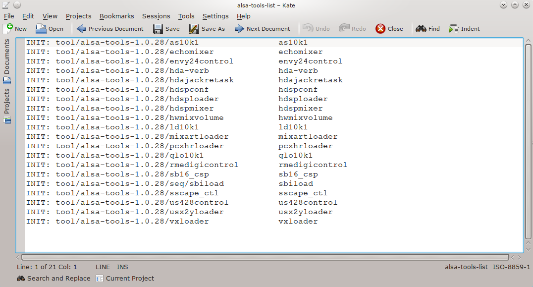 Chúng ta được tệp danh sách alsa-tools-list trong thư mục tool/alsa-tools-1.0.28/, dùng chuột mở nó ra bạn sẽ thấy hình như dưới đây