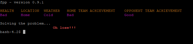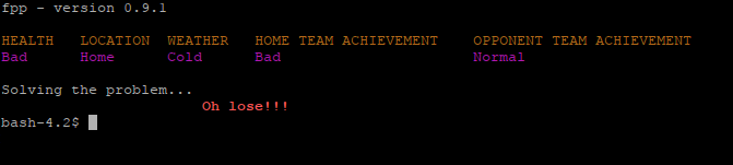 Phiên bản đầu fpp 0.9.0 sử dụng dữ liệu đơn giản để dễ đối chiếu. Phiên bản fpp 0.9.1 sử dụng 5 yếu tố với dữ liệu 16 trận đấu cho trong bảng bên dưới. Bây giờ chương trình sẽ thú vị, tính toán kết quả đi ra ngoài suy luận theo cảm giác của con người.