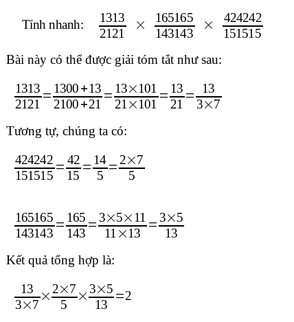 expr 1313 \* 165165 \* 424242 / 2121 / 143143 / 151515
