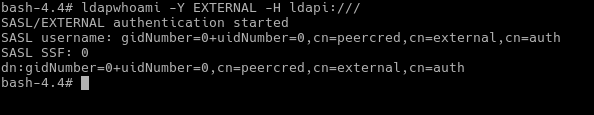 Mỗi nút được đại diện bởi một tên phân biệt (dn – Distinguished Name). Lệnh ldapwhoami cho biết bạn đang ở điểm nào với quyền truy cập tương ứng