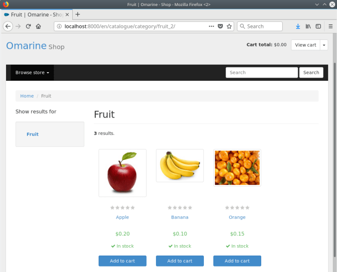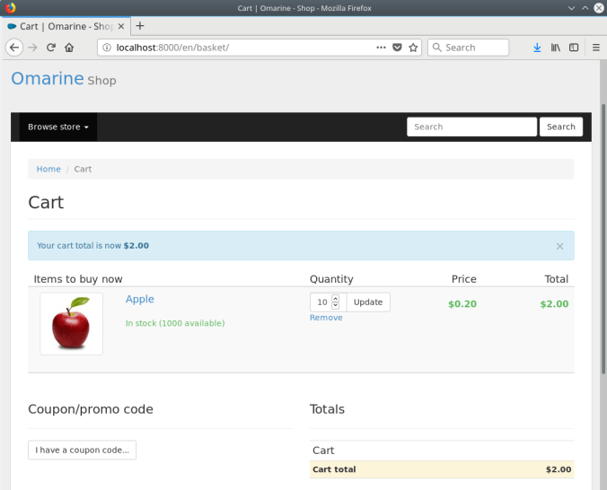 Ban đầu giỏ hàng trống không. Bạn cho một ít hoa quả vào giỏ hàng