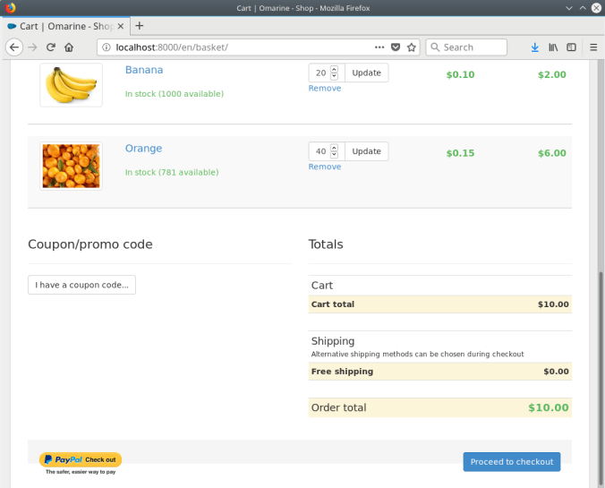 Chúng ta đã có một giỏ hàng $10.00. Bây giờ bắt đầu thanh toán