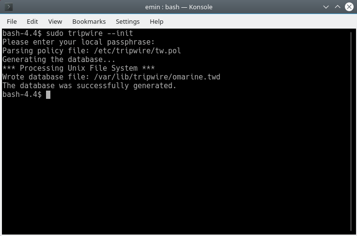 Wrote report file: /var/lib/tripwire/report/omarine-20180826-084906.twr