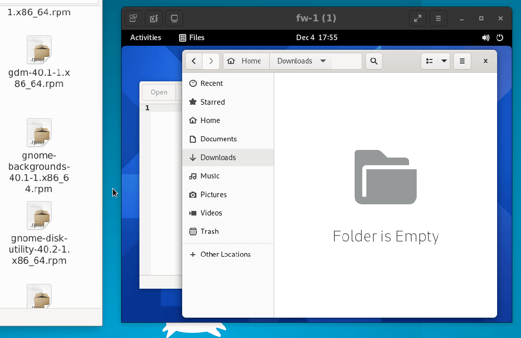 1. Perform drag and drop to transfer the gnome-backgrounds-40.1-1.x86_64.rpm package from the client to the virtual machine